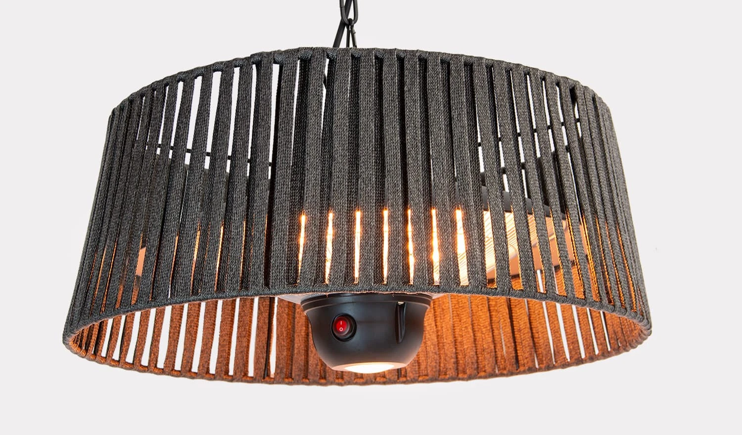 The ceiling heater can be easily turned on/ off with the remote control and provides high temperature heat of 1800W. Add the finishing touches to your garden with this contemporary ceiling electric heater, with a beautiful taupe coloured lampshade it will complement your wicker garden furniture beautifully.